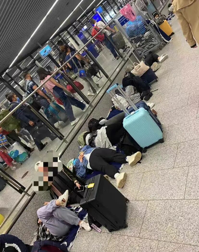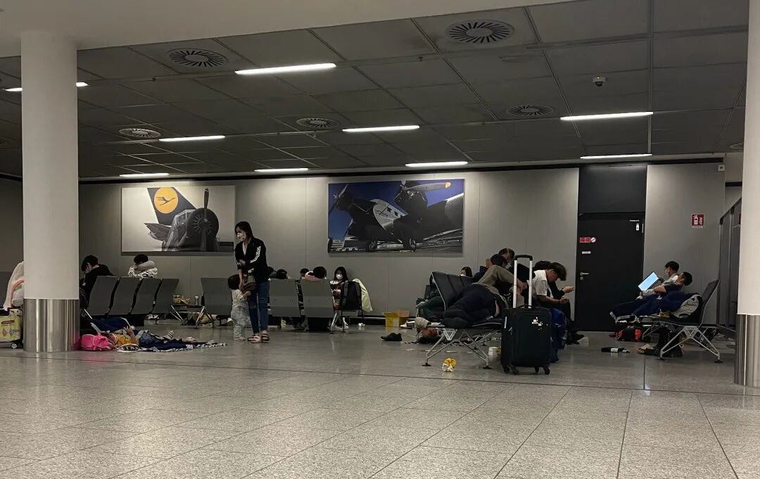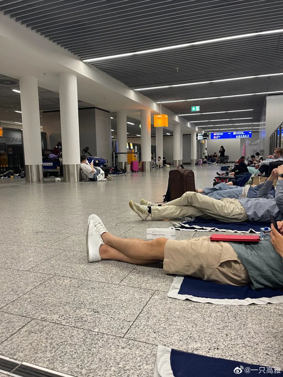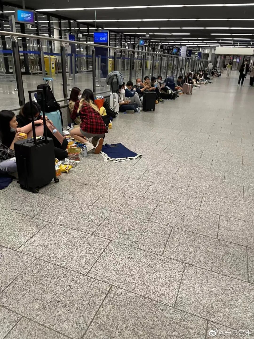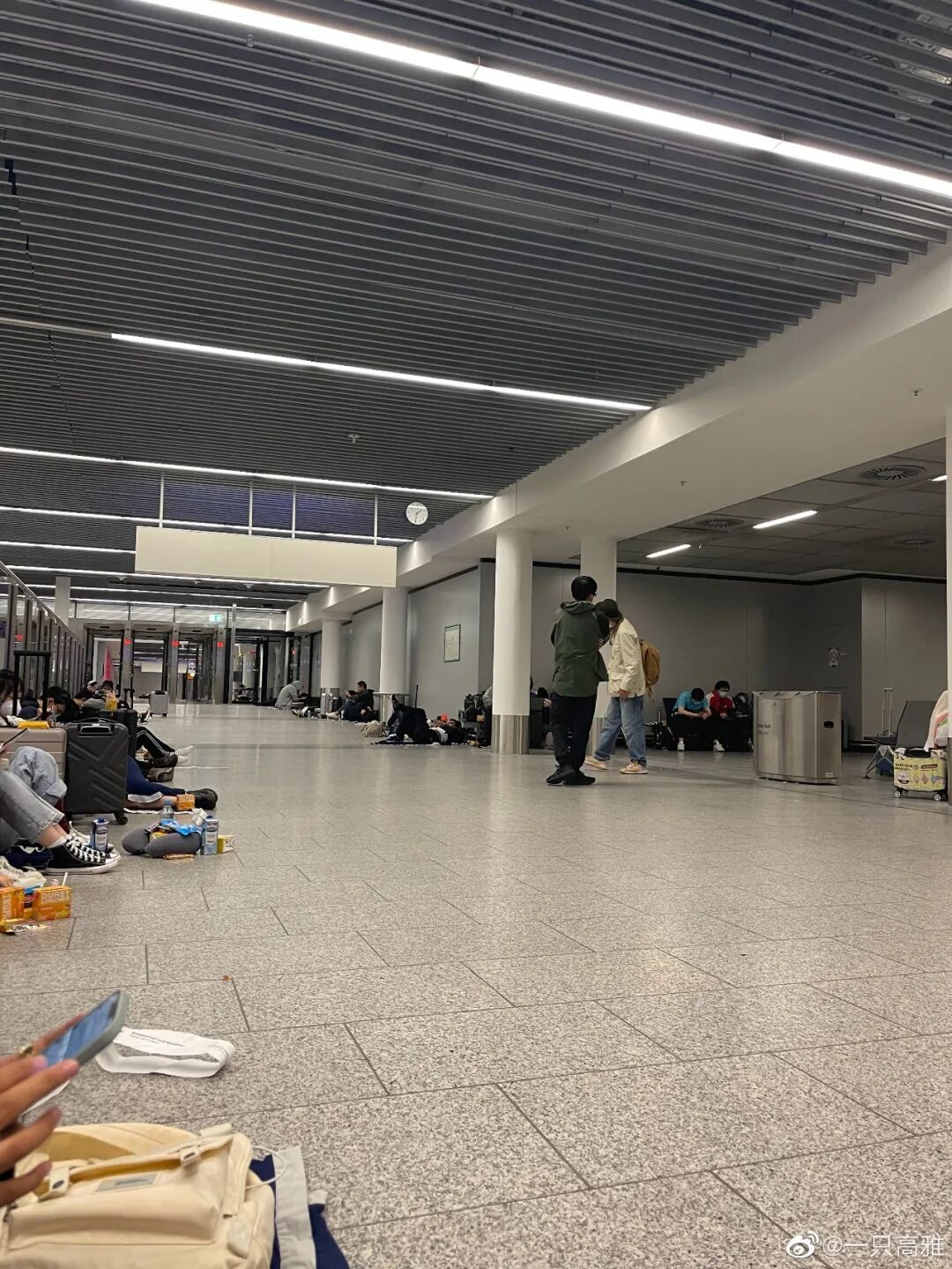 据现场滞留伙伴的阐述,目前有申根签可以入境德国的乘客以及安排了酒店入住,其他乘客全部滞留航站楼,提供了毯子和食物。