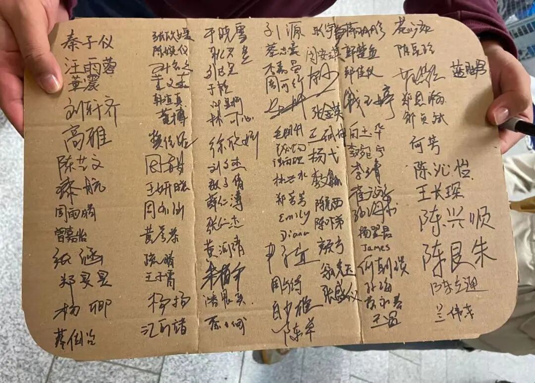 由于长时间未能得到确切的解决方案,滞留人员们剪开食物的包装袋和纸盒,写上自己渴望回家的诉求。