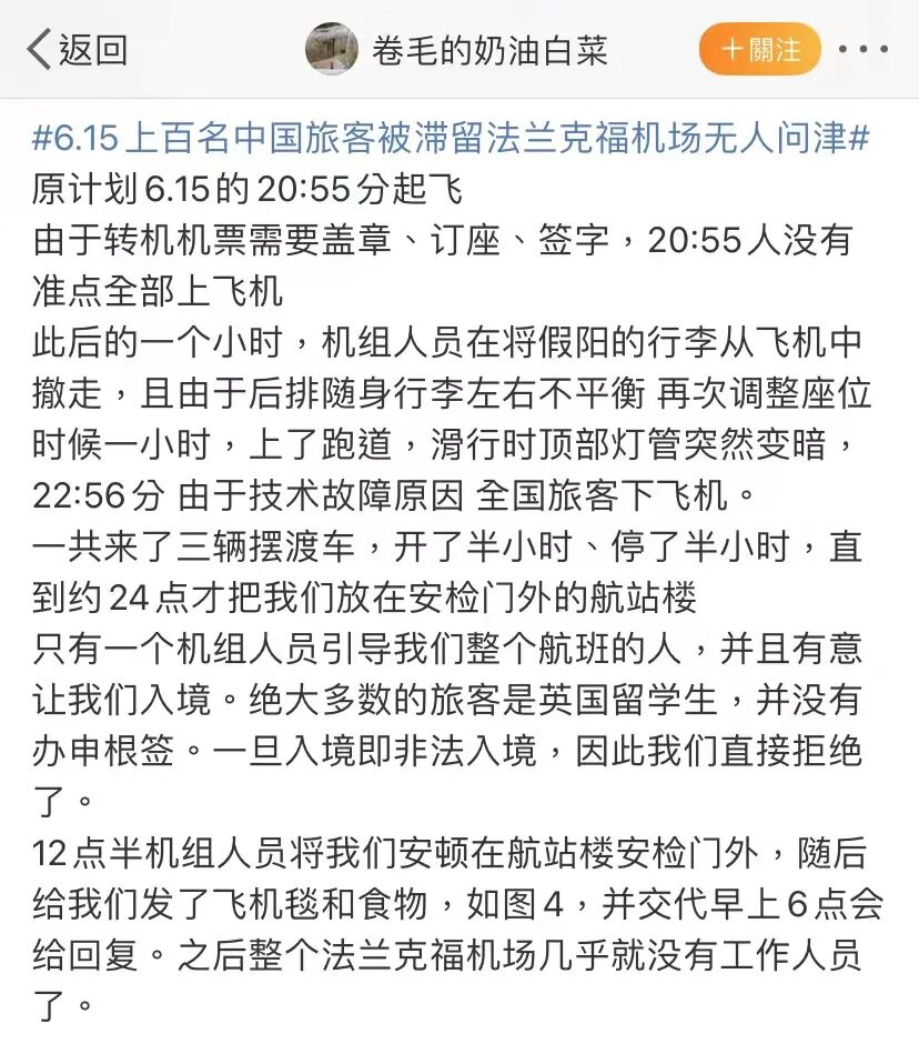 6月16日一早,汉莎工作人员来到现场,解释是由于bank holiday,对于该事件还没有具体的解决方案,表示可以重新安排一架飞机,但需要大使馆的同意批准。