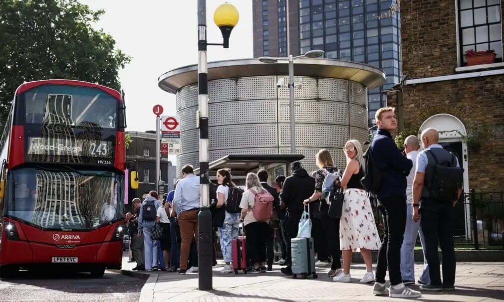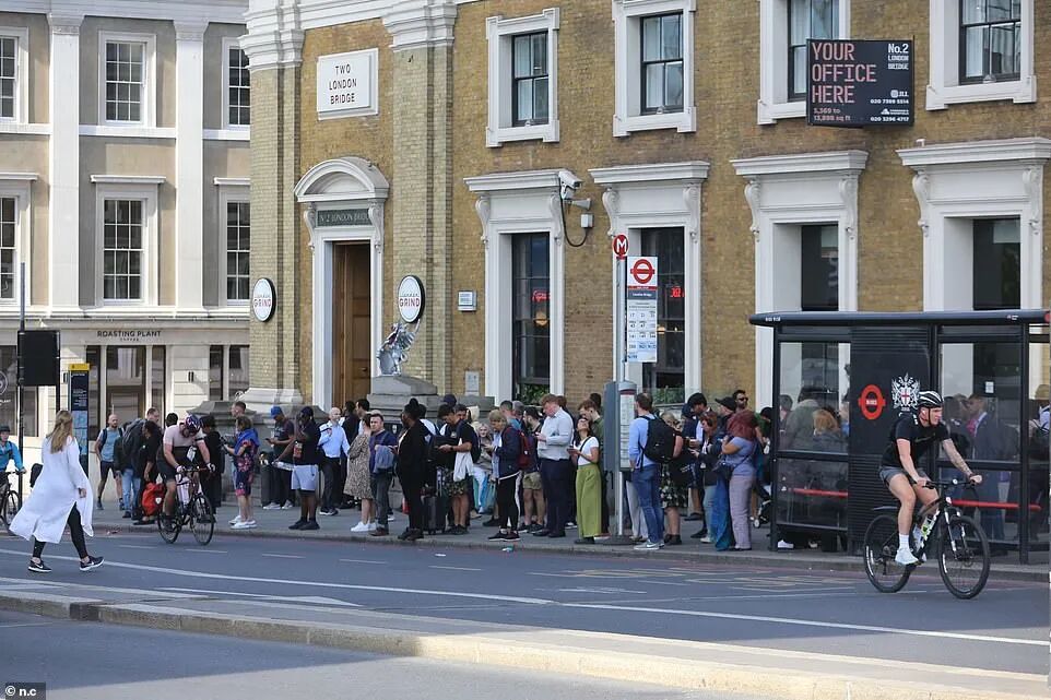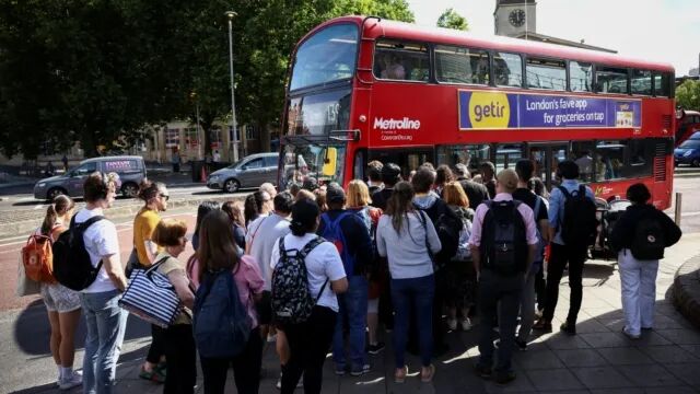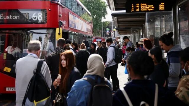 由于伦敦地铁大多数服务中断,出行需求量激增,伦敦市民出行面对着公交车排长队或高昂的出租车费用。