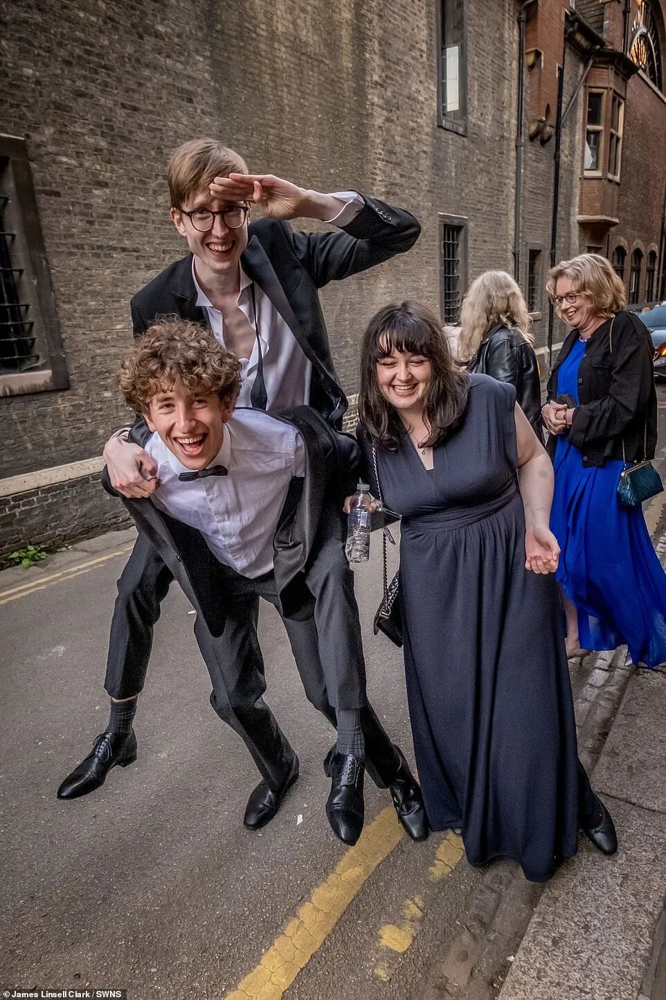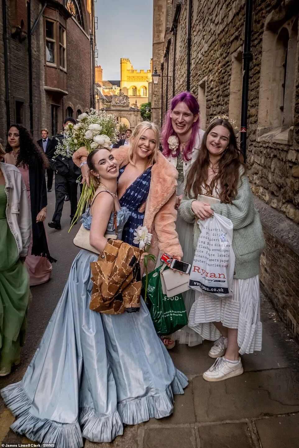大约1,800名剑桥本科生穿着豪华的正式着装参加了此次第156届“豪华五月舞会”。手捧鲜花、挽着伴侣,微笑着与朋友们合影留念,狂欢庆祝。