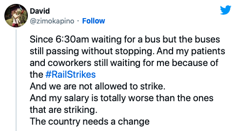 NHS员工David Raposo Buzon表示,他早上6时30分开始在公共汽车站等待,以便7时30分可以准时上班,但是由于队伍和道路拥堵,直到上午9时才到达工作地点。