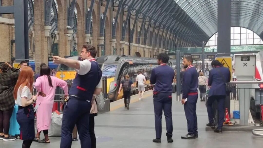 由于罢工关闭全网系统的后续影响,国王十字King’s Cross/St Pancras车站乘客依旧较少。