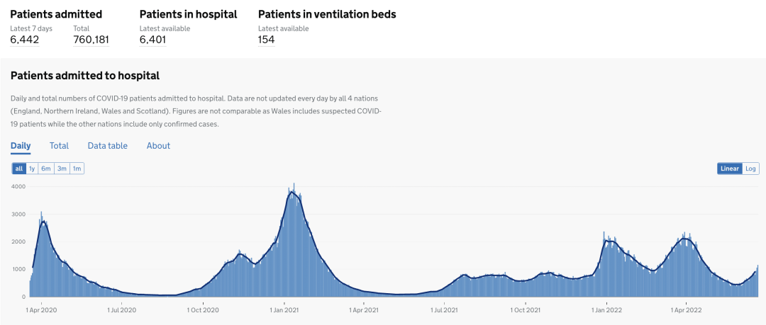6月23日数据:目前住院的确诊新冠患者6,401人,累计住院新冠患者总数为760,181(+6,442)。