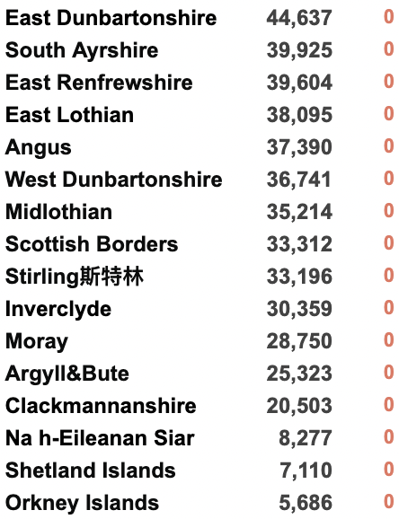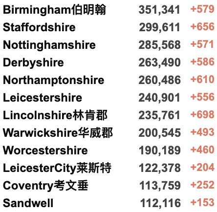 英国疫情实时地图 / 城区具体数据