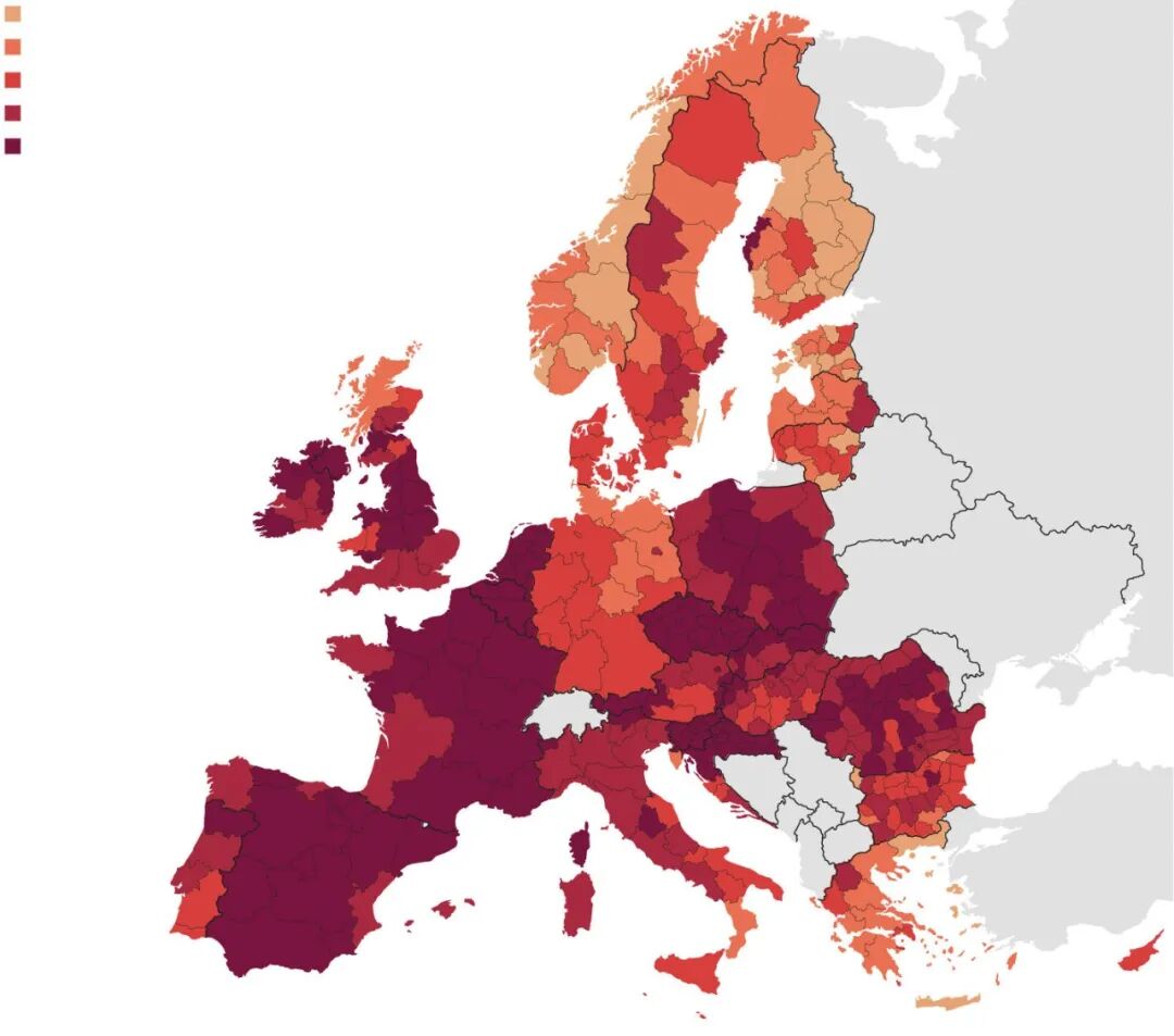 其中最严重的地区为英格兰西南部、米德兰、英格兰东南部以及英格兰东部,最高均可能达到1.4~1.5。