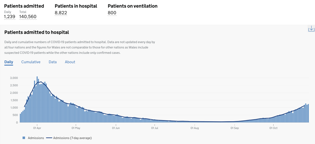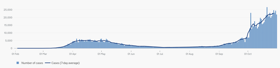 Chris Whitty教授在新闻发布会上也强调:英格兰地区的R值一直在非常迅速地上升,英国国家统计局ON估计,每日新增感染约5万例左右。