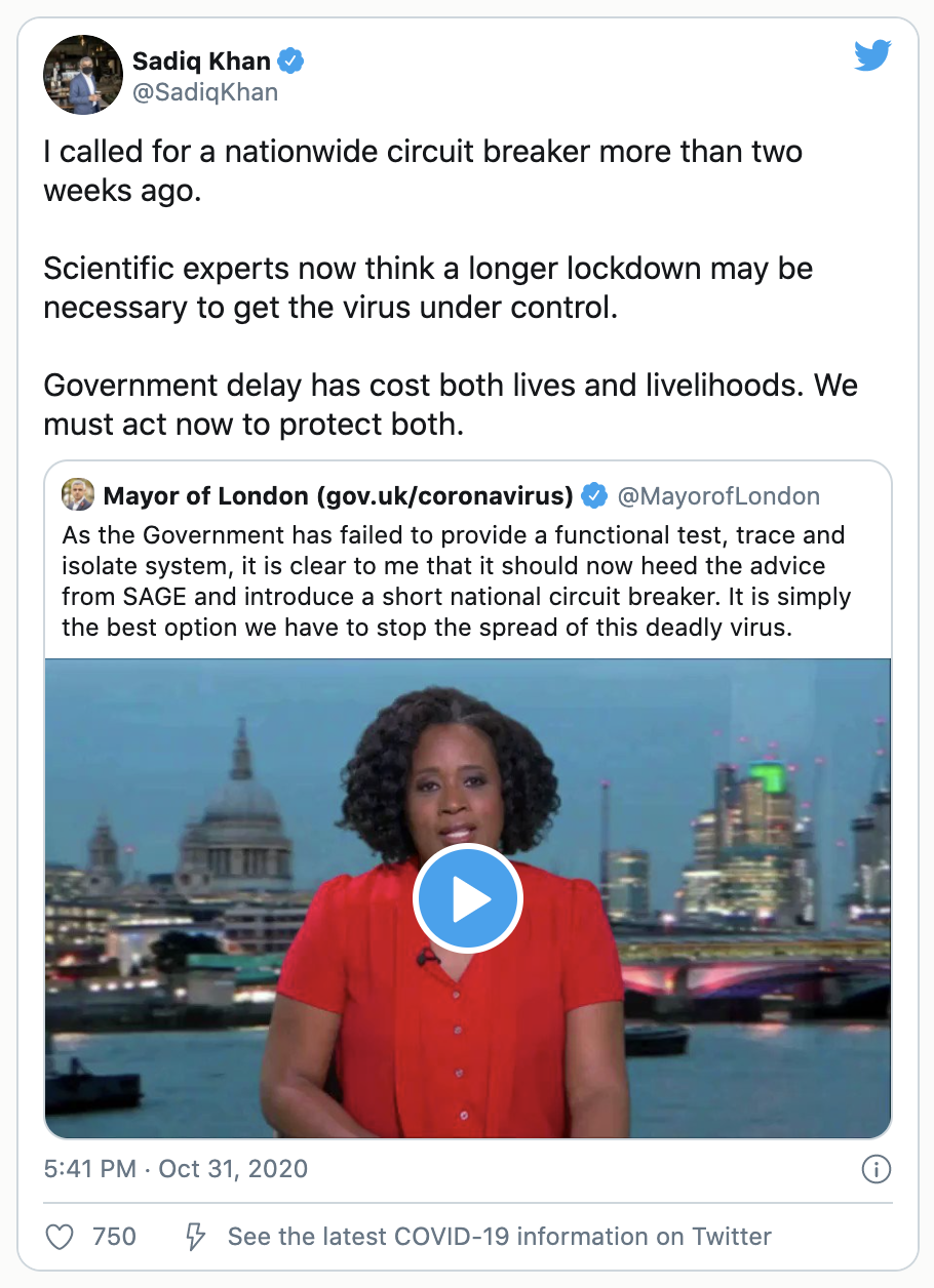 他曾在2周前就公开呼吁英国政府进行短期的彻底封锁,以抑制住疫情。然而2周过后,现在短期封锁已经无法控制疫情,因此需要长期全国范围的彻底封锁,这不仅仅让经济进一步崩塌,还让更多的生命无辜地消逝。