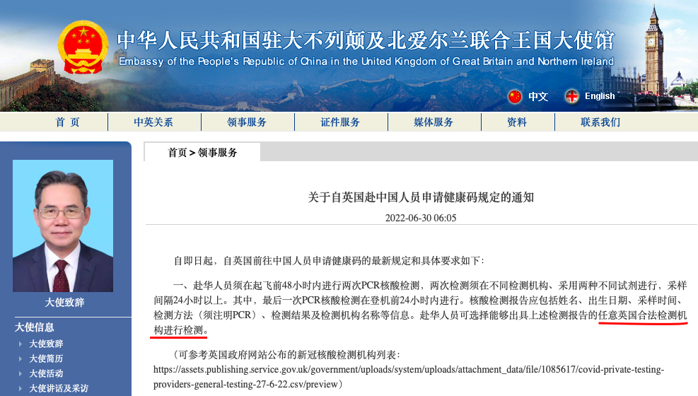 6月30日(周四),中国驻英国大使馆发布申请健康码最新规定通知,即日起,自英赴华人员 无需再进行