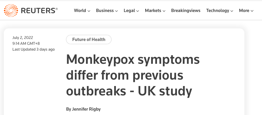 发表在《柳叶刀》(The Lancet)上的关于英国正在进行的猴痘爆发的第一项研究发现,英国猴痘感染者所出现的症状与之前的猴痘病例有所不同。