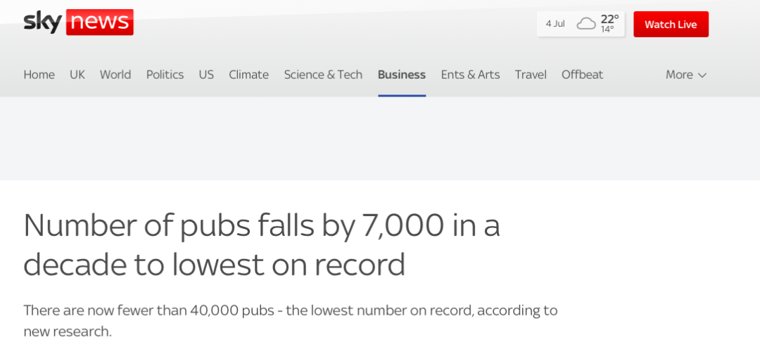 e。受疫情、通货膨胀影响,英国酒吧数量创下新低