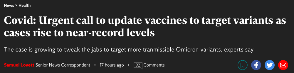 随着越来越多的证据显示英国正处于第五波疫情。包括Tim Spector教授在内的科学家们认为,提供针对Omicron变种亚株分支家族的新疫苗“迫在眉睫”。