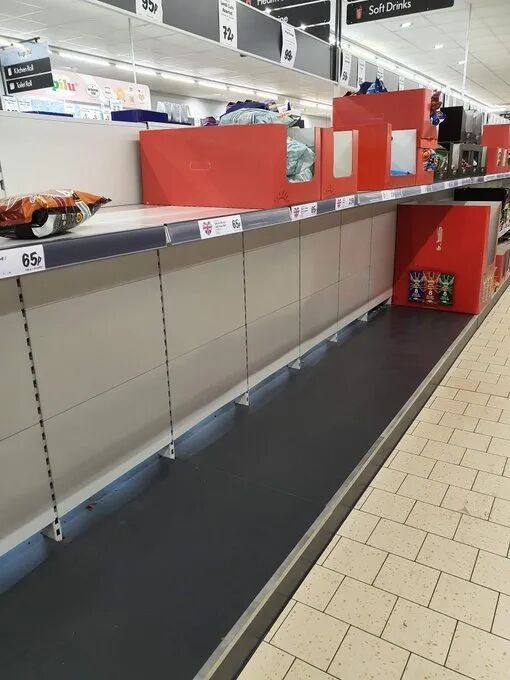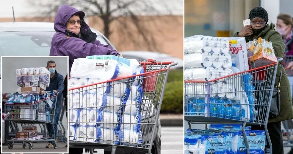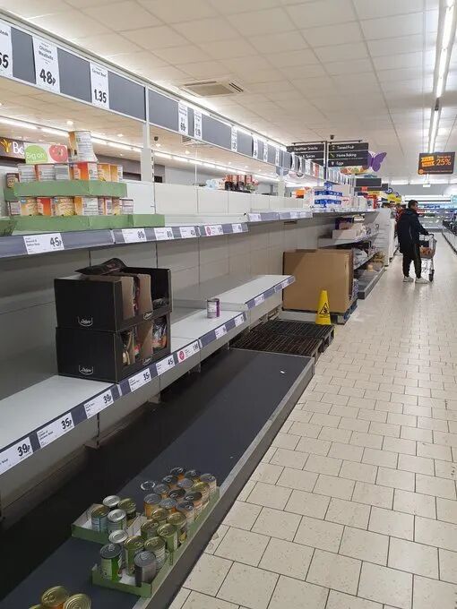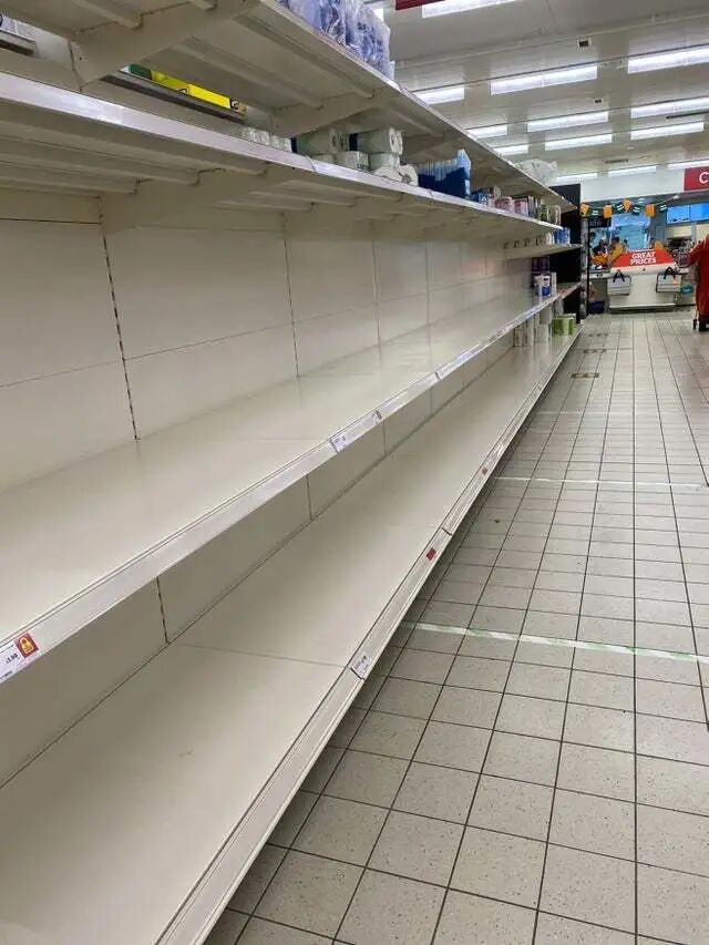 昨日,尽管官方呼吁人们不要恐慌性购买,各地的购物者们仍纷纷反应:很多生活必需品的货架上空空如也,从卷纸到意大利面,都被抢购一空。