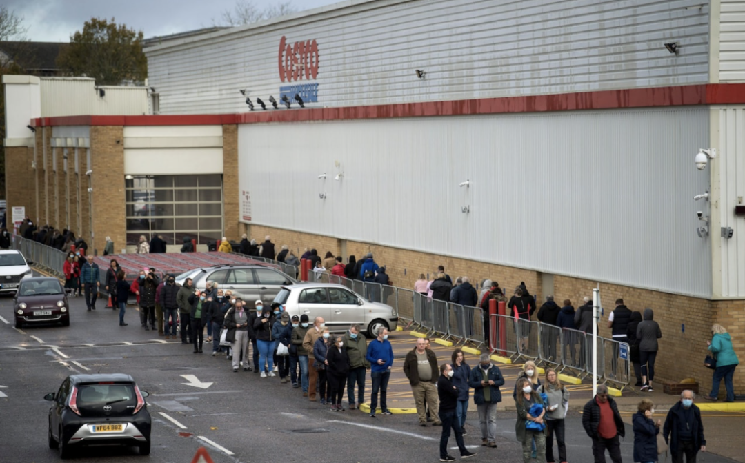 英格兰由于本周四起要开始全境第二次封锁,因此全境都又双叒叕引发了恐慌性购买狂潮...英格兰各地的LIdl、COSTCO、TESCO、Morrisons、Sainsbury、IKEA等超市/商场一大早都大排长龙。