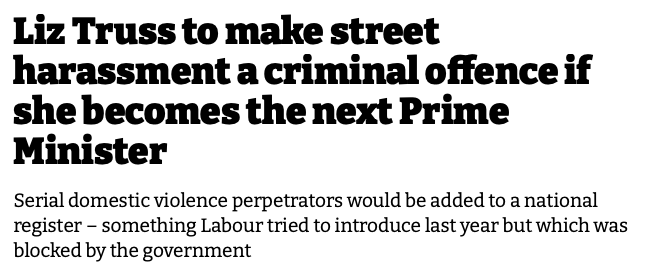 在看到Liz Truss成功“吃到螃蟹”后,Rishi Sunak也跟着在女性暴力问题上做出承诺,将设立一项新的刑事犯罪,未经同意拍摄女性上半身的“窥胸行为“downblousing定为非法;为受害者提供终身心理健康服务等。