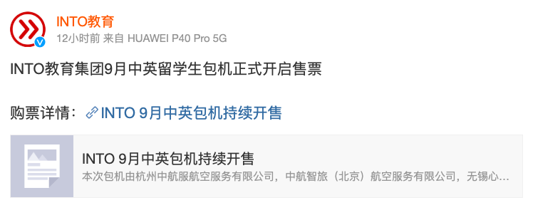 a。INTO教育集团9月中英留学生包机正式开启售票