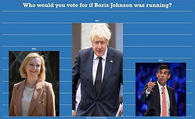民意调查显示,约40%的受访者表示,如果鲍里斯被允许继续参选,他的支持率将高于正在竞争保守党领袖、首相的外交大臣Liz Truss和前财政大臣Rishi Sunak。