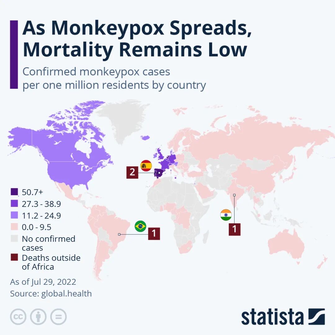 非洲地区以外记录4例猴痘死亡病例 | 图片来源Statist