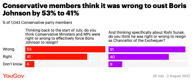 a。超半数保守党成员认为迫使鲍里斯下台的决定是错误的