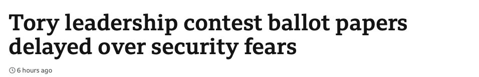 在BBC公布的发给保守党成员的电子邮件中提到,正在发放选票包,”由于花了一些时间增加投票过程中的额外安全措施,所以会比最初计划的时间推迟到达“。并补充称,一旦投票公司收到邮寄投票,将停用成员的在线代码,”减少任何存在做票、欺诈的风险“。