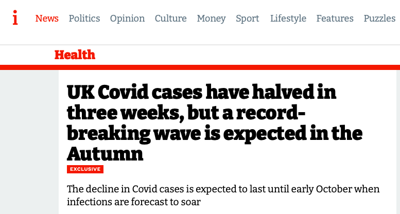 d。英国新冠病例三周减少一半,预计秋季将出现创纪录感染