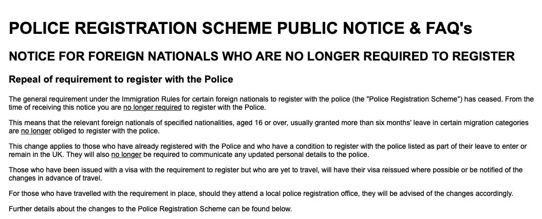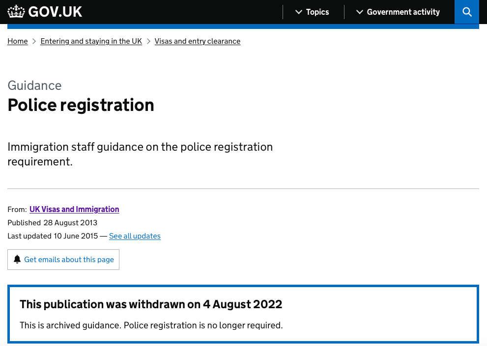 英国官网信息显示, 警局注册要求已于2022年8月4日取消 。
