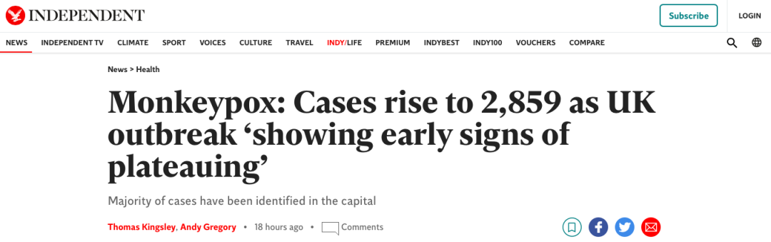 英国病例趋于平稳的同时,美国报告猴痘病例超过7,100例,宣布猴痘疫情为该国“公共卫生紧急事件”。