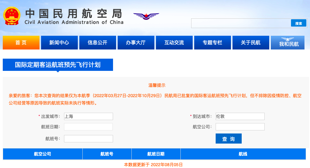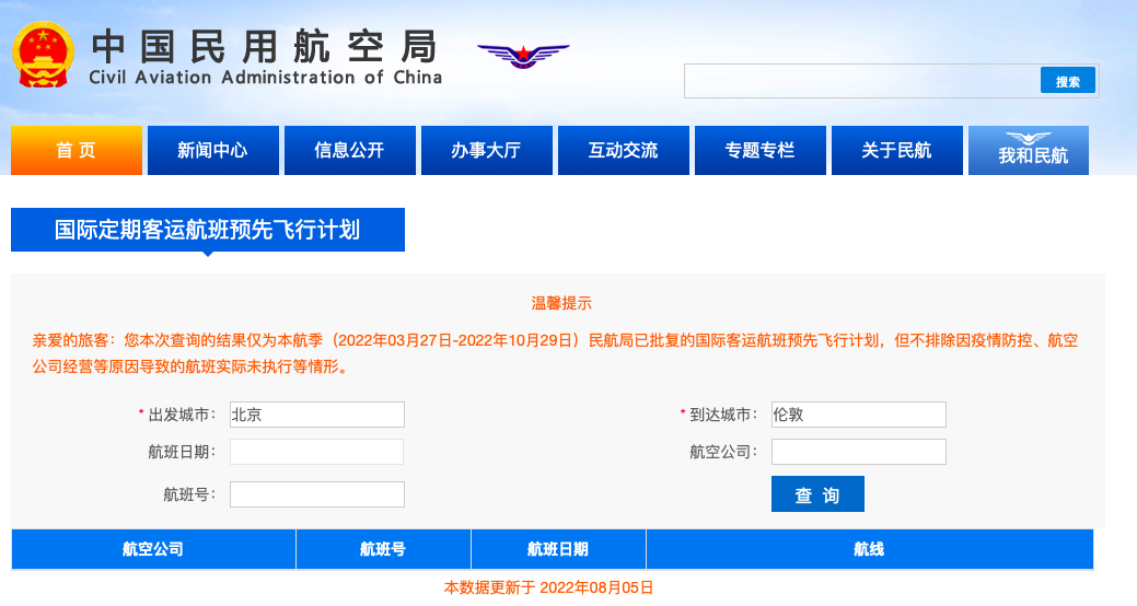 根据颈长在民航局官网查询的预先飞行计划,以北京、上海为例,在2022年10月29日之前都暂无直飞计划,所以回国的最佳选择仍然是 转机赴华 。