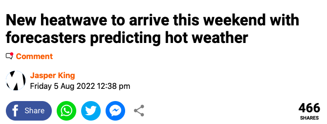 英国气象局预测,到下周末英国部分地区的气温将重新升至超过30℃。伦敦预计会比葡萄牙更热。北部城市也将享受一波阳光,曼彻斯特的最高气温将达到29℃。