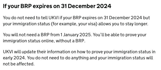 这意味着BRP卡在2024年12月31日到期后,可以在无需告知英国移民局(UKVI)的情况下,直接凭签证留在英国。