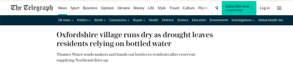 据报道,牛津郡泰晤士河畔亨利(Henley-on-Thames)附近的Northend已成为英国首个受干旱影响,出现水供应中断的村庄。