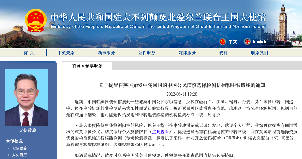 b。中驻英大使馆提醒谨慎选择检测机构和中转路线