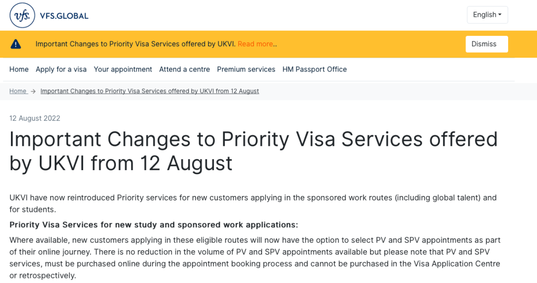 据悉,优先服务PV的预约量将有所减少,以使UKVI能够处理更多的基本签证申请,以逐步减少签证的整体处理时间。特别优先服务SPV的预约量将不会减少。