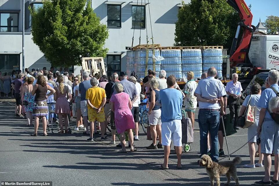 居民只好在炎热天气下排队取水