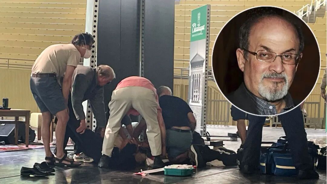 当地时间8月12日上午,拉什迪在纽约西部演讲时,被一名突然冲出上台的男子刺了10多刀,颈部受伤,随后被直升飞机紧急送往医院。