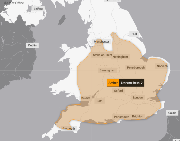 随着热浪持续,原定于8月14日(周日)下午18时结束的极端高温黄色预警,现在将延长至8月16日(周二),覆盖英格兰南部大部分地区和威尔士东部部分地区。