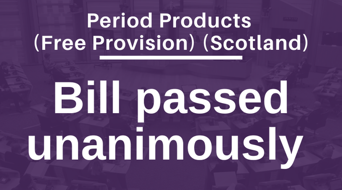 《经期产品法》(Period Products Act)最初于2016年由工党成员Monica Lennon提出,最终在2020年得到了苏格兰议会的一致批准。