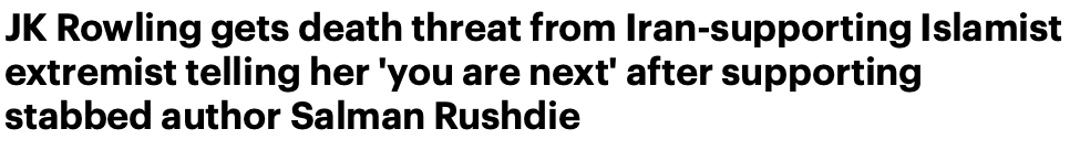 a。英籍印度裔作家在美遇袭后,英国作家J.K.罗琳收到死亡威胁