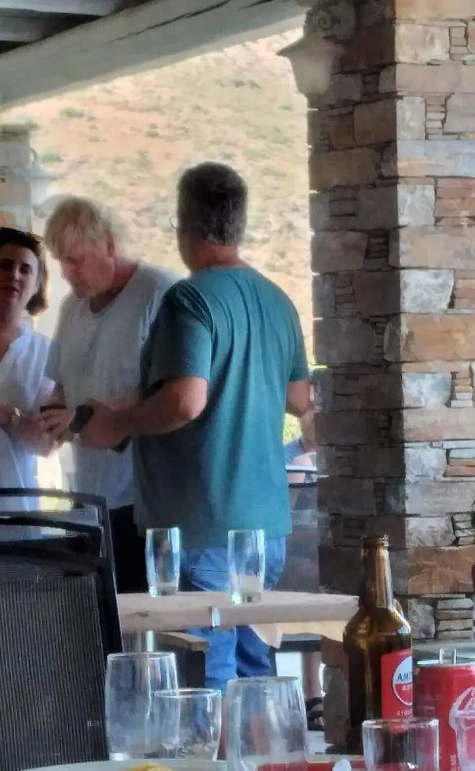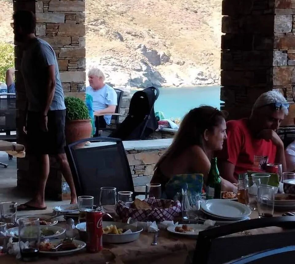 据英国《每日邮报》(Daily Mail)的独家照片,即将离任的英国首相鲍里斯Boris Johnson及其妻子卡莉Carrie正在希腊度假。鲍里斯夫妇在一家可以看到迷人河滩和爱琴海的餐厅中就餐。