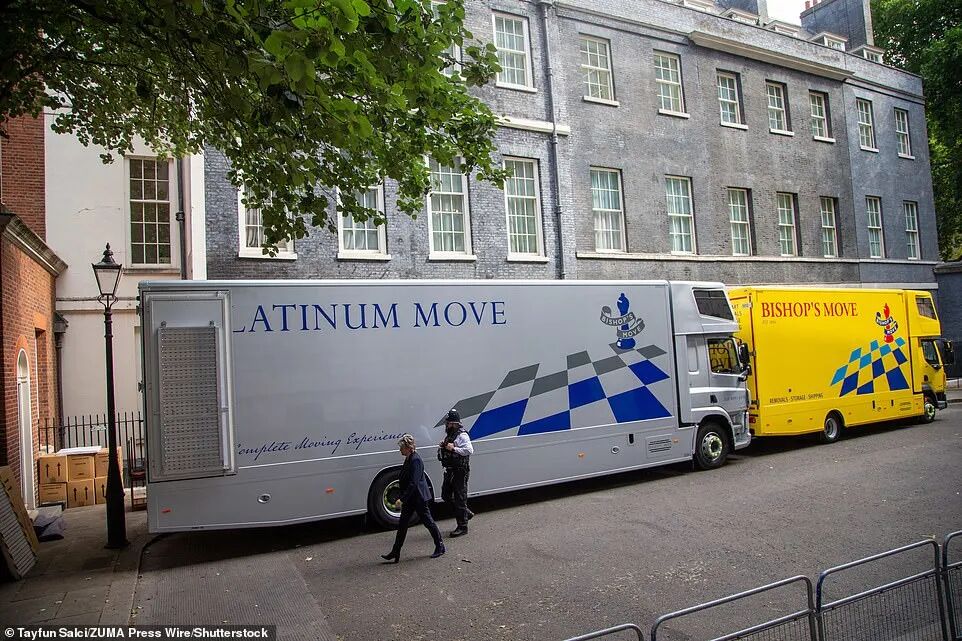 与此同时,两辆搬家卡车正停在唐宁街10号门外。经助手们证实,”向下一任首相过渡的工作“正在进行。鲍里斯被允许带走任何由自己支付的所有家具,这其中可能包括价值£800一卷的金色墙纸。