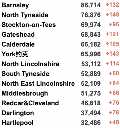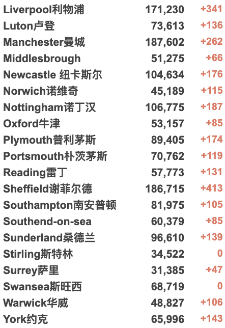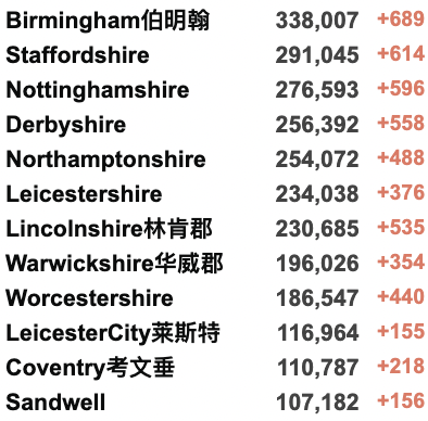 英国疫情实时地图 / 城区具体数据