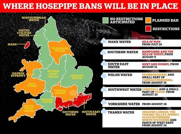 e。泰晤士河水务公司8月24日起实施软水管禁令,将影响超1,500万用户用水