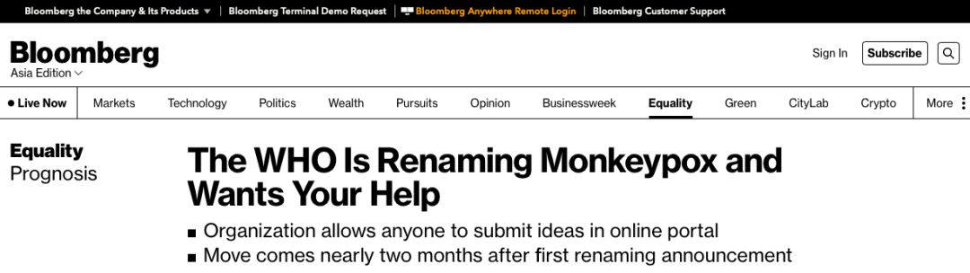 世界卫生组织WHO在近日发布的一份声明中正式向公众发出征集,重新命名猴痘病毒,确保不会冒犯任何特定人群、动物、国家、地区等。