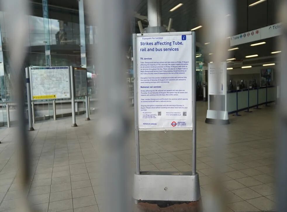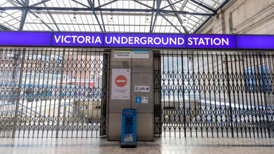 b。伦敦地铁罢工现场:全国铁路罢工仅保留20%服务