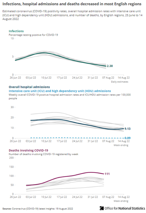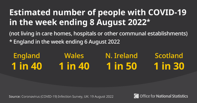 据国家统计局(ONS)的最新数据,在截至8月6日的一周内,约有140多万人感染新冠。比截至7月26日的一周下降了32%。