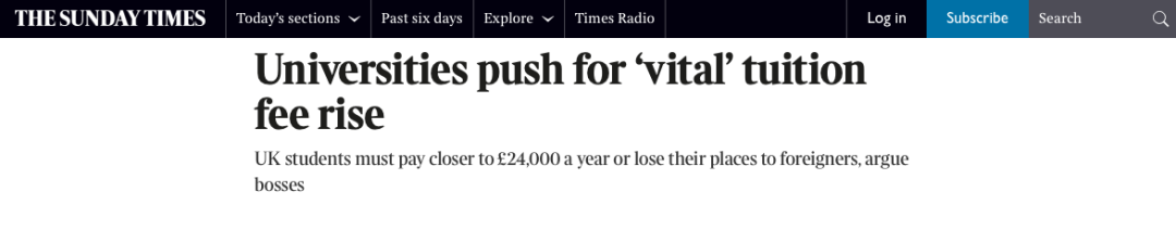 据《泰晤士报》(The Times)报道,英国大学呼吁将本土学生的学费提高至与国际生相似,即每年平均支付学费£24,000。