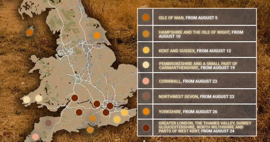 约克郡水务公司的禁令预计将于8月26日开始,共有2,400万人将受到用水限制的影响。