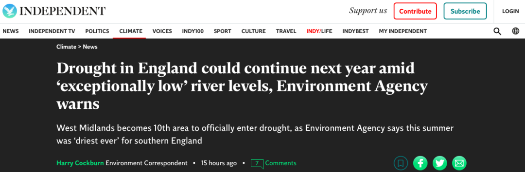 早前,英国多个地区已正式进入干旱状态。
