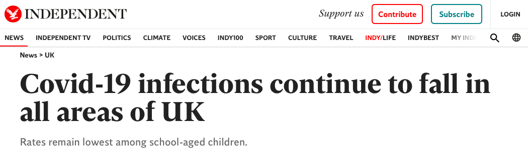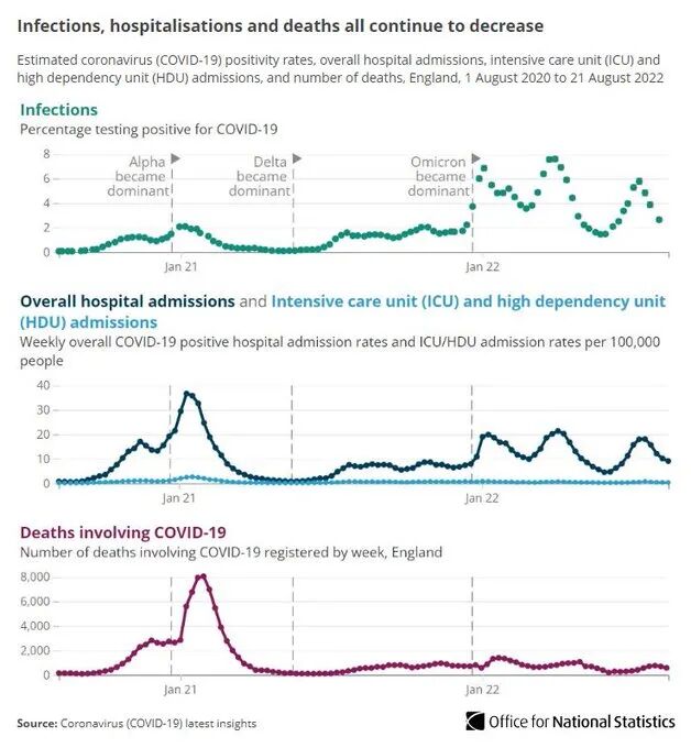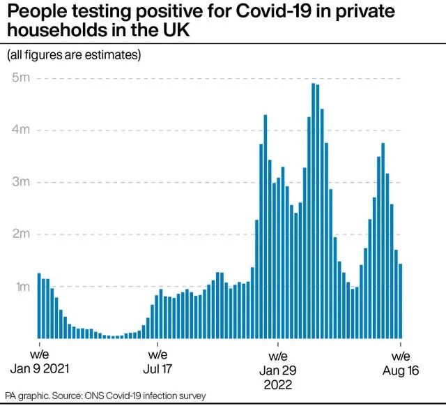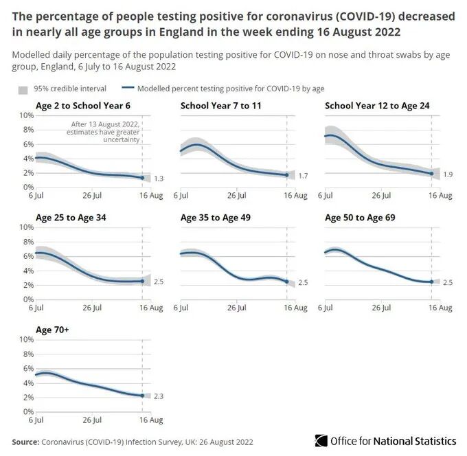 根据国家统计局ONS的最新数据,英国新冠感染率正在继续下降,处于两个多月以来的最低水平。在截至8月16日的一周内,估计共有140万人报告感染新冠,比前一周的下降16%。