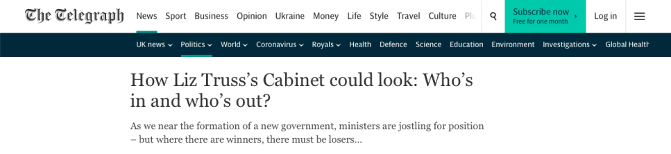 而Liz Truss的竞争对手、前财政大臣Rishi Sunak也被认为不会被邀请进入她的新内阁。